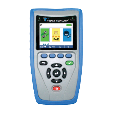 Combines the functions of a high-end cable tester and length measurement tester, with the capability to identify link status, link capability, and PoE detection.