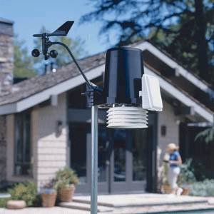 The system consists of a console unit and an innovative integrated sensor suite that includes a rain collector with self-emptying bucket, temperature and humidity sensors and an anemometer. The sensor suite is housed inside a standard radiation shield, protecting the sensors against solar radiation and additional sources of reflected and/or radiated heat. The passive shielding reduces outside solar radiation temperature errors.