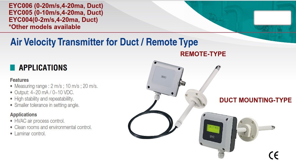 EYC003 0-20M/S REMOTE AIR VELOCITY TRANSMITTER W LCD DISPLAY (5M)