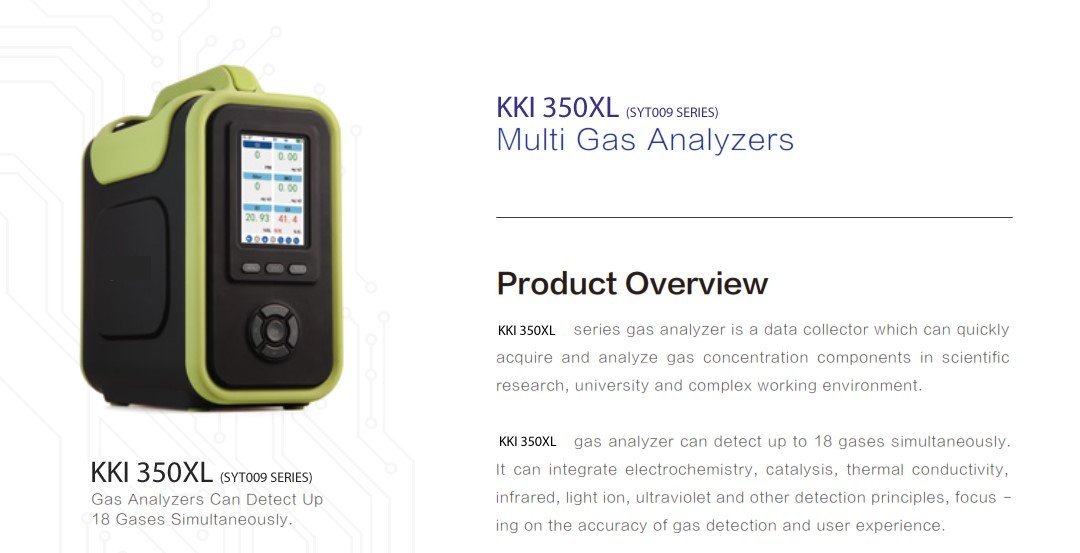 New KKI 350XL (SYT009 series) gas analyzer is a data collector which can quickly acquire and analyze gas concentration components in scientific research, university and complex working environment.